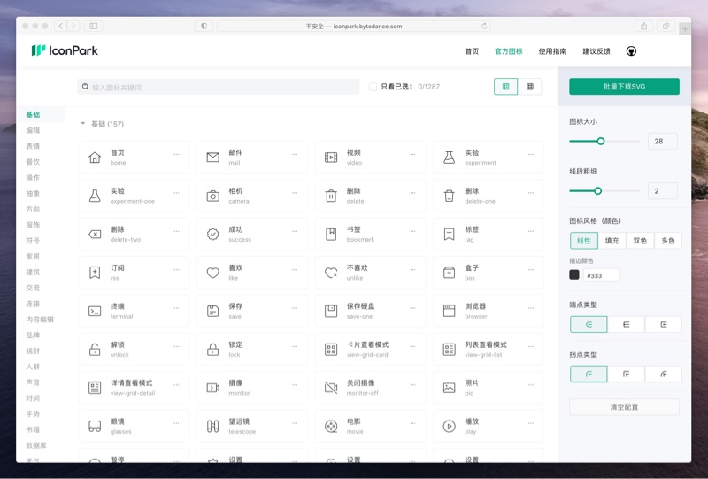 IconPark 的出现几乎把上面这些问题都解决了。图标数量非常之多,而且质量高,风格中性,能满足很大一部分的互联网项目需求,而且支持很高程度的自定义和色彩主题,二次修改非常方便。